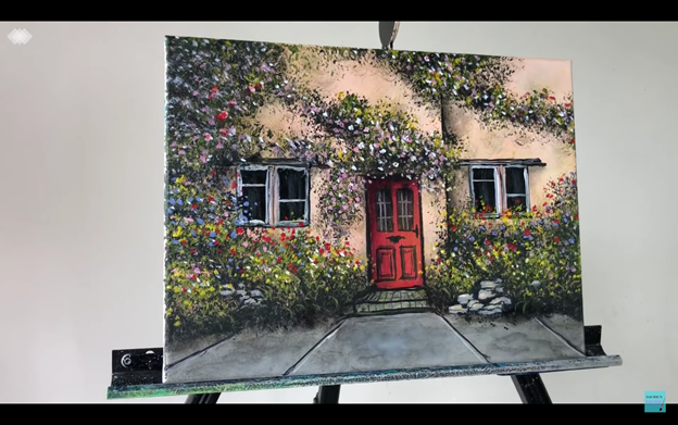 This colorful acrylic painting of a house covered in flowers is really vibrant and fun to paint! Although it looks complex, once I break it down for you in this step-by-step acrylic painting tutorial, you will see that it’s much simpler than it looks. This tutorial will particularly help you level up your understanding of layers and detailing, and how those two elements can make an acrylic painting come to life! So let’s start, as usual, with the materials list: Materials: Palette Palette knife (for mixing paints) Jar of water (to keep brushes wet) Artist sponge 4-Piece brush value pack...