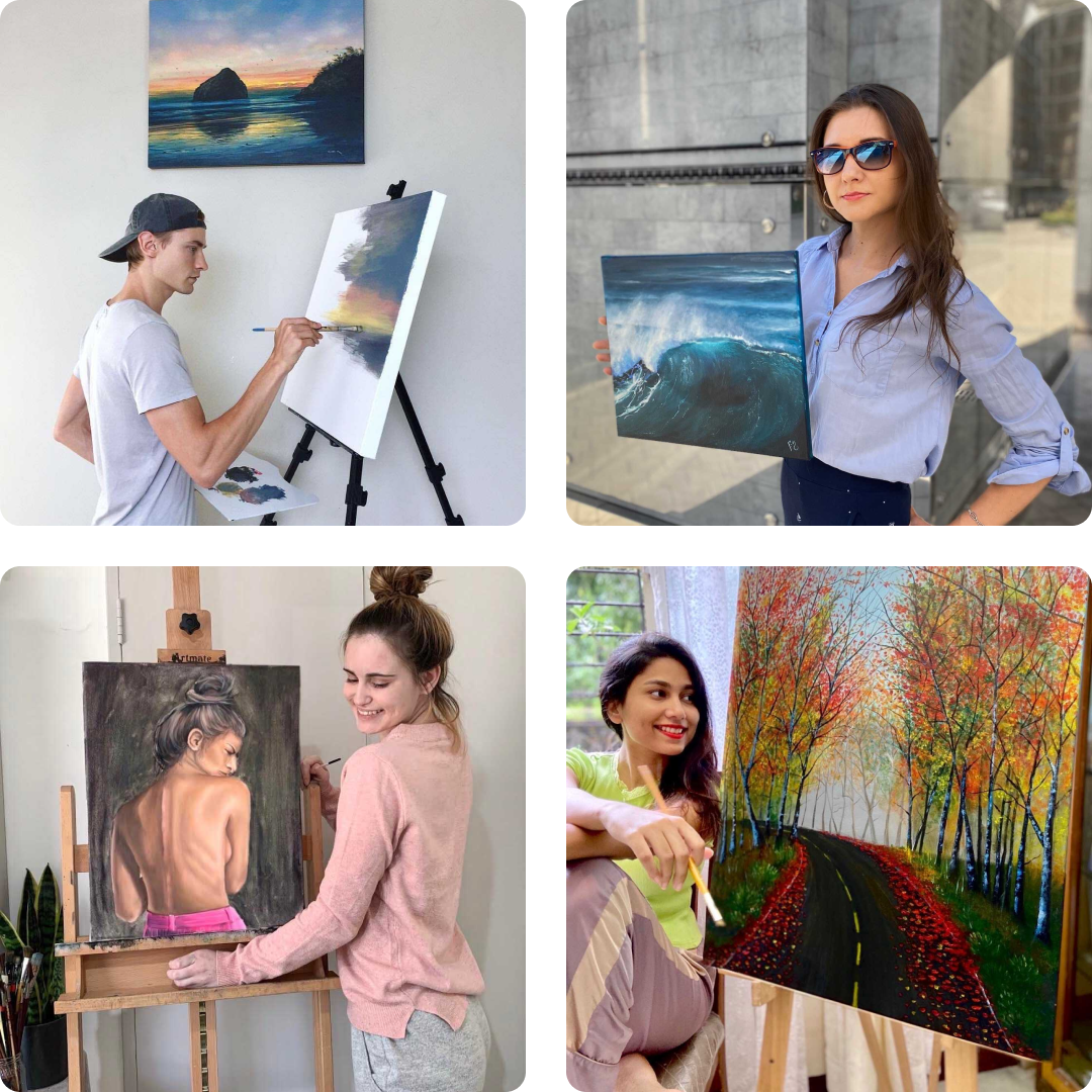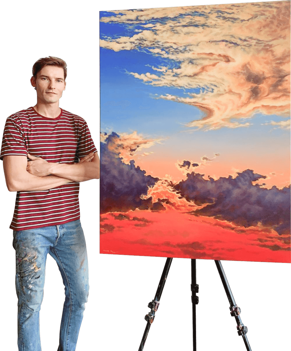 Over his past 17 years of experimentation with acrylics, Feliks developed and refined his unique blending technique which allows acrylics to stay wet and workable longer. In the spring of 2017 Feliks’ wife Andrea encouraged him to start sharing his art on Instagram where he opened his page @colorbyfeliks and would share painting process videos. Many of his videos have gone viral on the internet and he now has painting collectors all over the world. During this time, he was able to gather a painting community of over 2 million people on his social media platforms. Feliks is most excited about being able to help aspiring artists by providing free resources to help them grow in their art journey and encourage artists to keep creating. He hopes to continue being able to support artists by providing lessons, products, inspiration and a platform for emerging artists around the world.